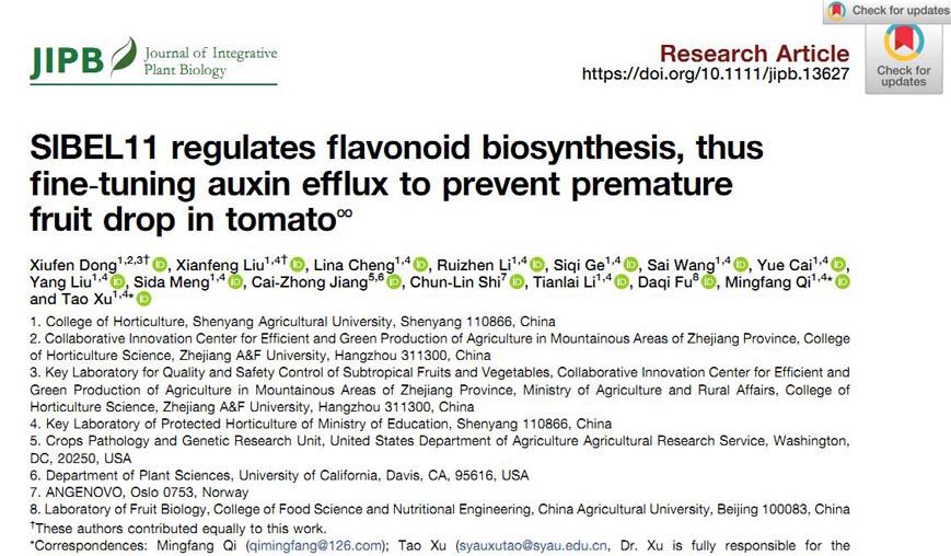 JIPB [2022 IF 11.4]沈陽農(nóng)業(yè)大學(xué)齊明芳/許濤教授團(tuán)隊在番茄脫落調(diào)控機(jī)制方面取得新進(jìn)展