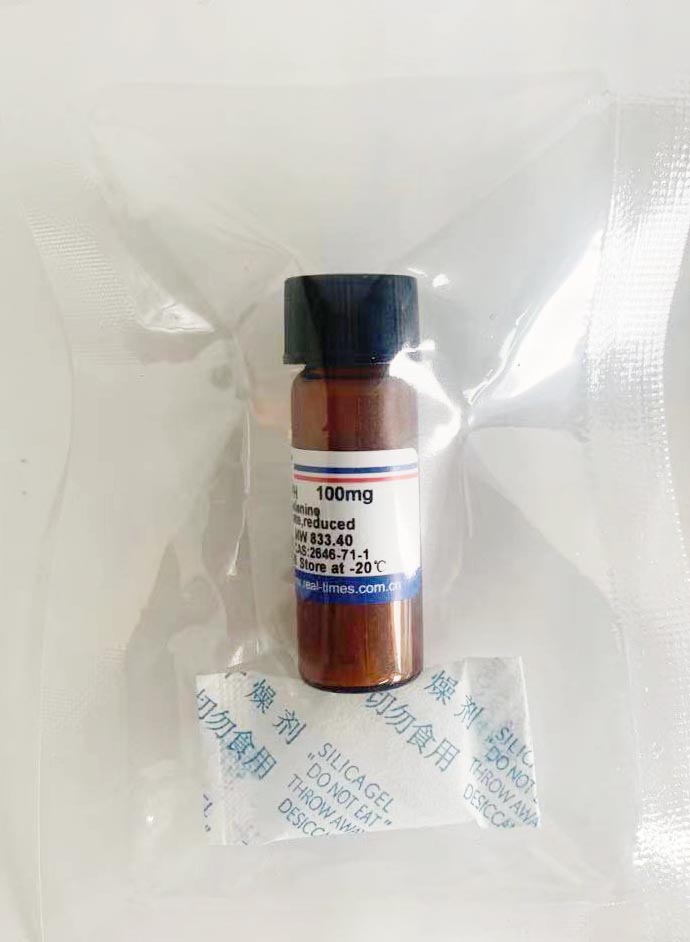 含有25 mg NADPH粉末玻璃瓶中加入0.5 ml或1 ml 10 mM Tris-HCl pH8.0,徹底溶解,即配成50 mg/ml(60 mM)或25 mg/ml(30 mM) NADPH溶液;溶液-20℃可以貯存2周,-80℃可以貯存2個(gè)月??梢愿鶕?jù)需要適量分裝成小管-80℃貯存,每次取一管使用,避免污染和減少凍融次數(shù)。