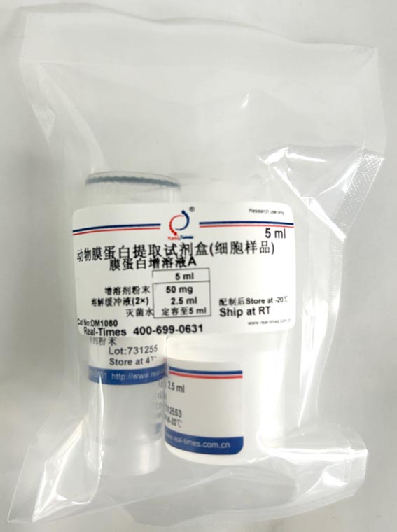 該產(chǎn)品配套動(dòng)物膜蛋白提取試劑盒(貨號(hào):RTD8111,RTD8112)和動(dòng)物線粒體提取試劑盒(貨號(hào):RTD8115,RTD8116)使用。含有終濃度1%去垢劑DDM(n-Dodecyl