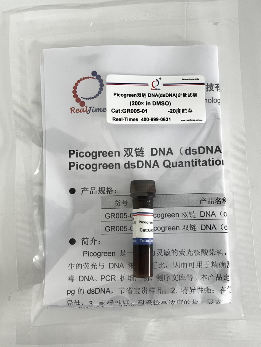 Picogreen 是一種極為靈敏的熒光核酸染料,其僅在與DNA 雙鏈結(jié)合后才發(fā)出熒光,且所產(chǎn)生的熒光與 DNA 濃度呈正比,因而可用于精確測量多個來源的 dsDNA,包括基因組 DNA、病毒 DNA、PCR 擴增產(chǎn)物、測序文庫等。本產(chǎn)品定量具有以下優(yōu)勢:1. 靈敏度高:可檢測低至200 pg的dsDNA,節(jié)省寶貴樣品;2. 特異性強:在等摩爾的RNA存在的條件下,對dsDNA具有特異性;3. 耐受性好:耐受較高濃度的鹽、尿素、乙醇、氯仿、去垢劑、蛋白或瓊脂糖,可以直接定量PCR擴增產(chǎn)物而無需從反應混合物中純化DNA。4. 易于使用-只需在樣品中加入染料,等待5分鐘,然后讀數(shù)即可,且適用于96和384孔板;與大多數(shù)基于熒光的酶標儀和熒光計兼容。5. 適用范圍廣:可適用于PCR的分析、芯片樣品、DNA損傷分析、酶活分析、基因組DNA定量以及復雜混合物中dsDNA的檢測和病毒DNA定量等多種領域。