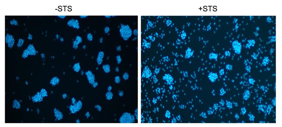 Jurkat細(xì)胞密度調(diào)整到1×106/ml,六孔板接種2 ml,加入10 μl STS(星孢菌素)至終濃度1 μM