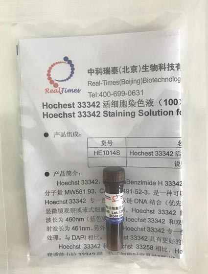 33258相比,Hoechst 33342對細(xì)胞的毒性作用更小一些,33258穿透能力較33342弱,染活細(xì)胞時容易被"泵出",也就是拒染。所以一般來說Hoechst 33258用于細(xì)胞固定后再染色,而Hoechst33342則可以對活細(xì)胞直接進(jìn)行染色。
