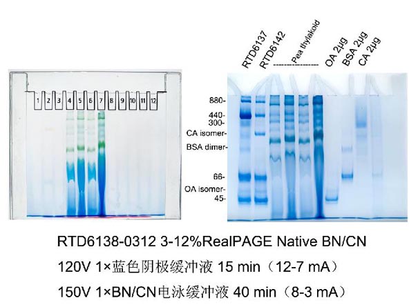 Product: RTD6130 非變性PAGE凝膠制備及電泳試劑盒; PL111 5×非變性非還原蛋白上樣緩沖液; RTD6142 高分子量非變性電泳蛋白質(zhì)Marker II(45-669 kD)