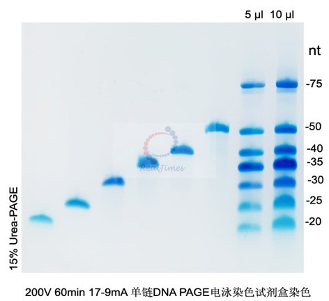 1. 使用單鏈DNA PAGE電泳染色試劑盒(貨號(hào):RTS5103)染色: