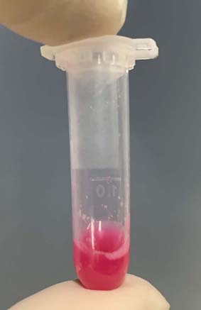 注:溫和地混合,不要?jiǎng)×艺鹗帲悦馕廴净蚪MDNA;所用時(shí)間絕對(duì)不應(yīng)超過5分鐘 ,以免質(zhì)粒受到破壞;紅色溶液應(yīng)該透明均一,如有渾濁紅色顆粒,表明裂解不充分,會(huì)大大降低質(zhì)粒提取效率。